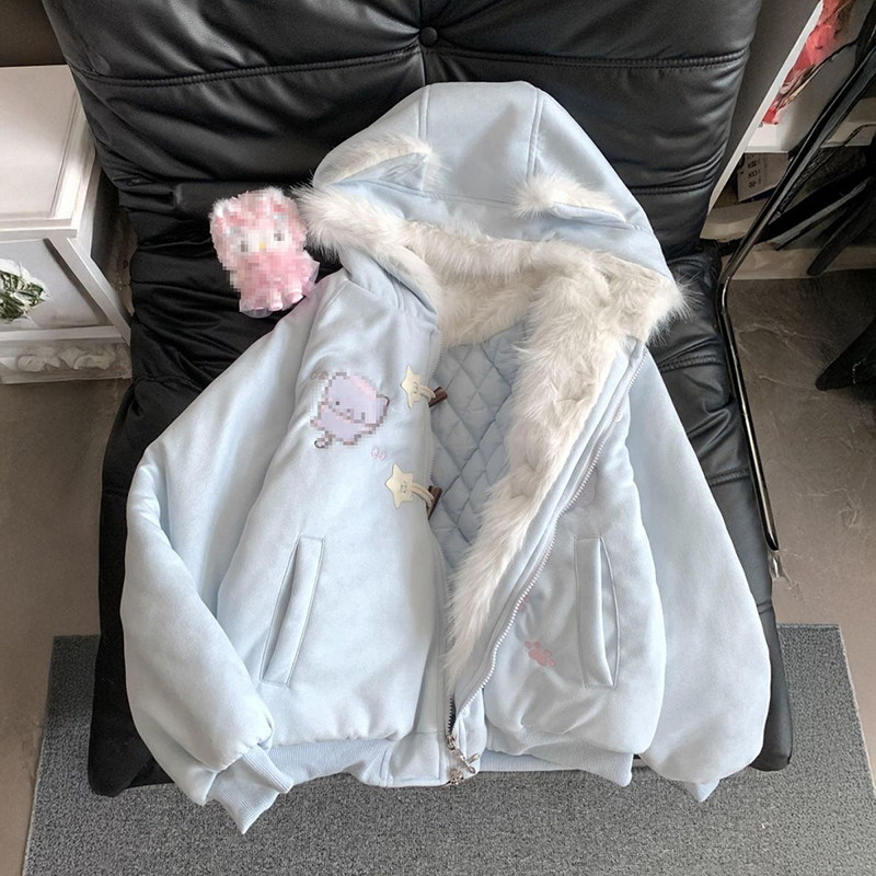 Blurred bear原创日系软妹宅萌二次元宅系卡通印花休闲加绒外套女
