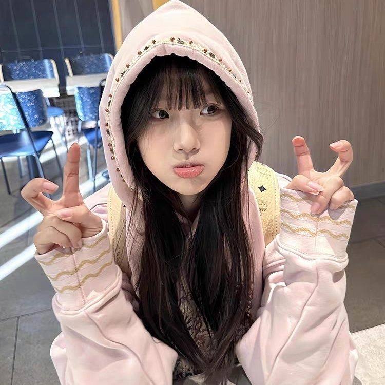 粉色甜美可爱连帽卫衣女宽松慵懒风刺绣加绒加厚软妹外套长袖上衣