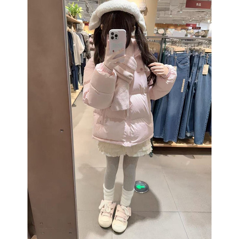 原创甜妹可爱小羊连帽棉服女保暖小个子甜美嫩粉棉衣加厚软妹外套