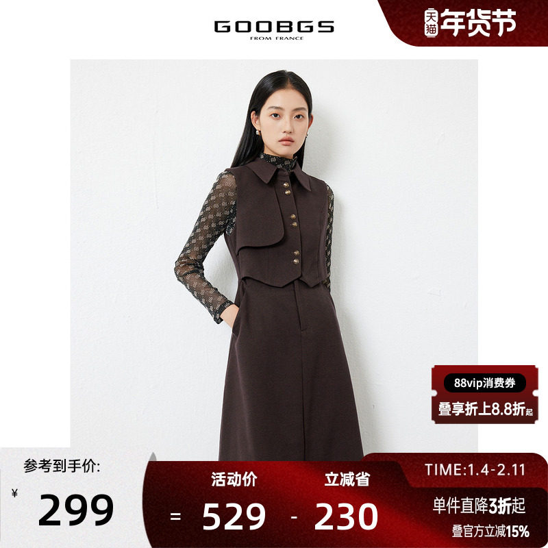 【零染】PRICH假两件V领连衣裙冬季新款收腰保暖显瘦长裙女