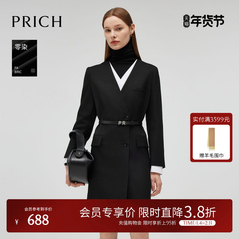 【绵羊毛】PRICH气质通勤拼接连衣裙冬季新款保暖显瘦长裙女
