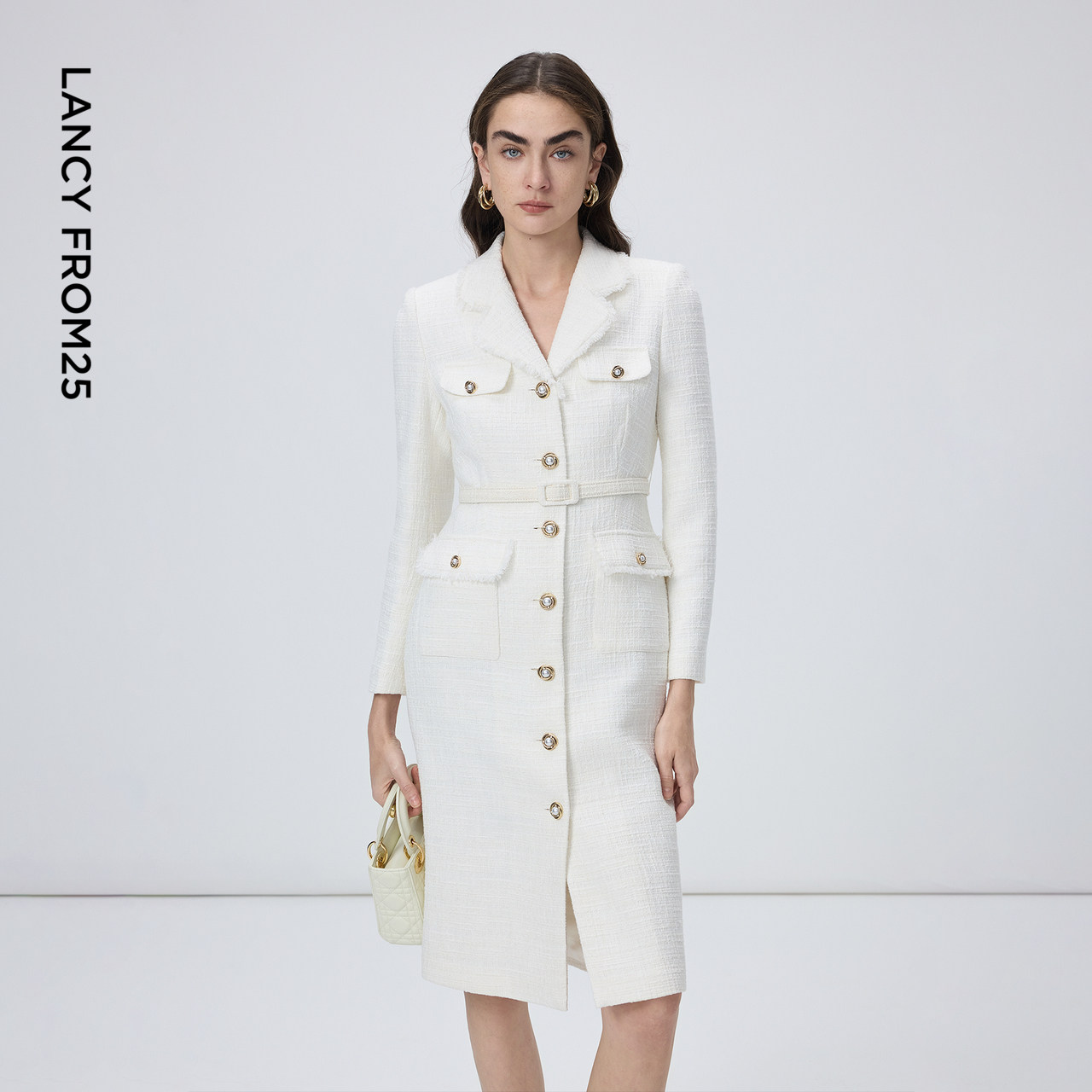 朗姿棉质复古小香风设计感高级感显瘦裙子通勤休闲收腰连衣裙冬季