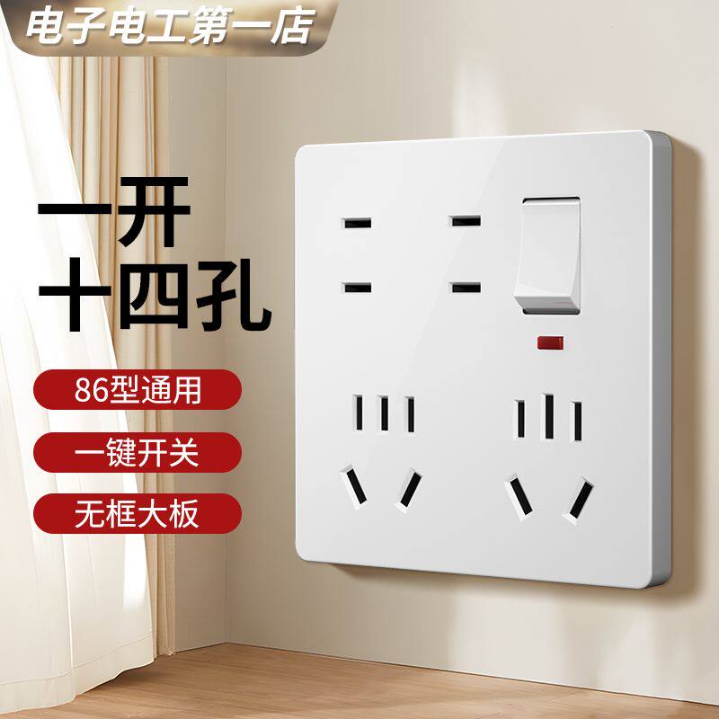 一开十二孔开关插座多孔电源面板86型16A大功率一开十四孔16a
