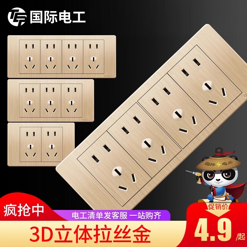 - 香槟金拉丝开关插座