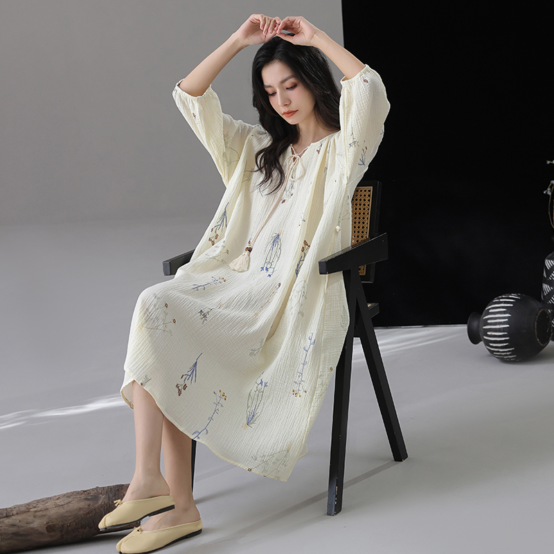 轩靓显瘦睡裙女士夏季薄款针织棉七分袖中长裙显白睡衣大码连衣裙