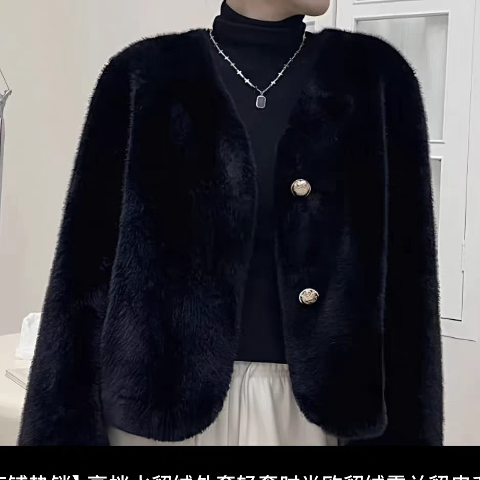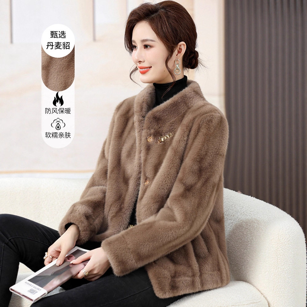2025新皮草外套女冬短款年轻妈妈装水貂绒皮毛一体中老年女装立领