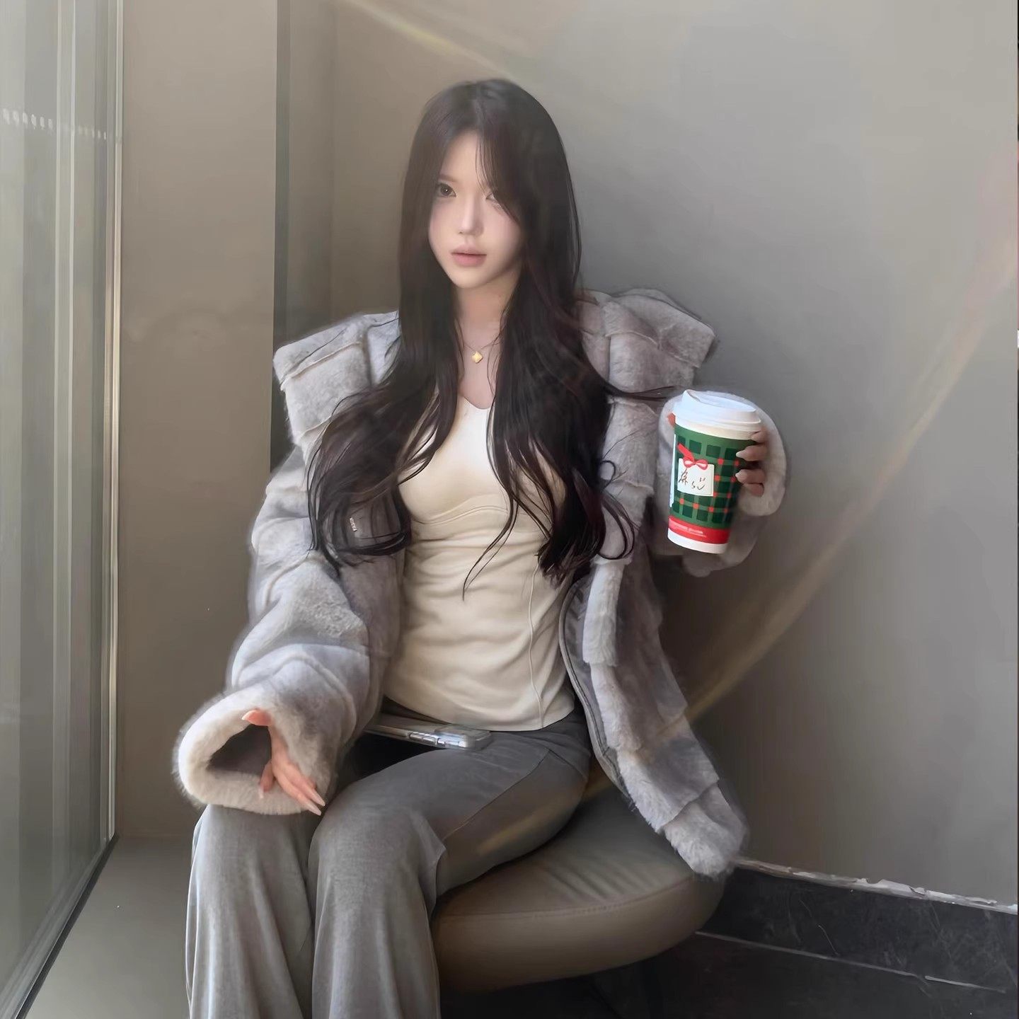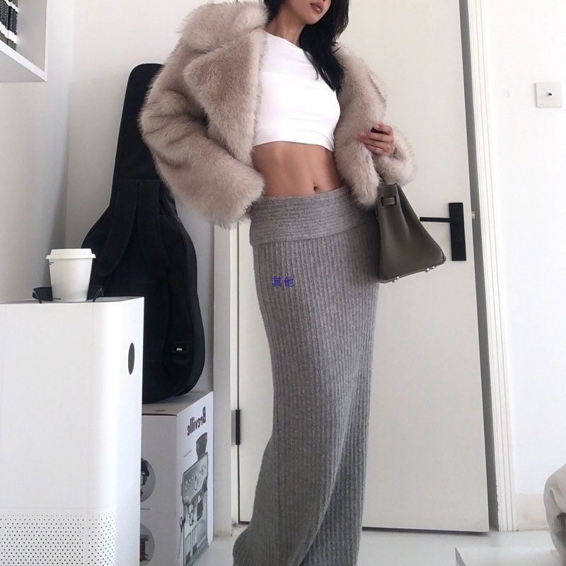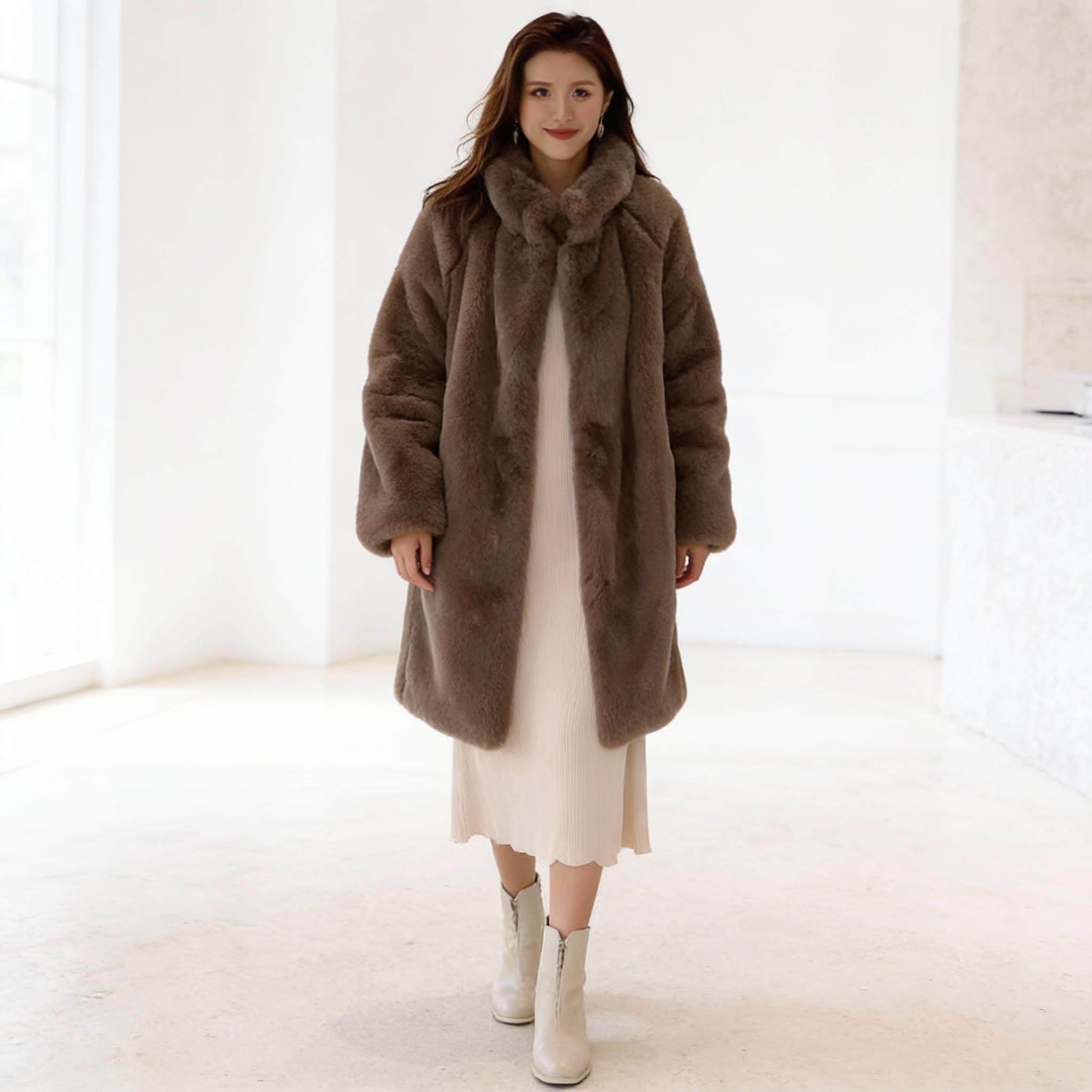 - 兔毛皮草女中长款