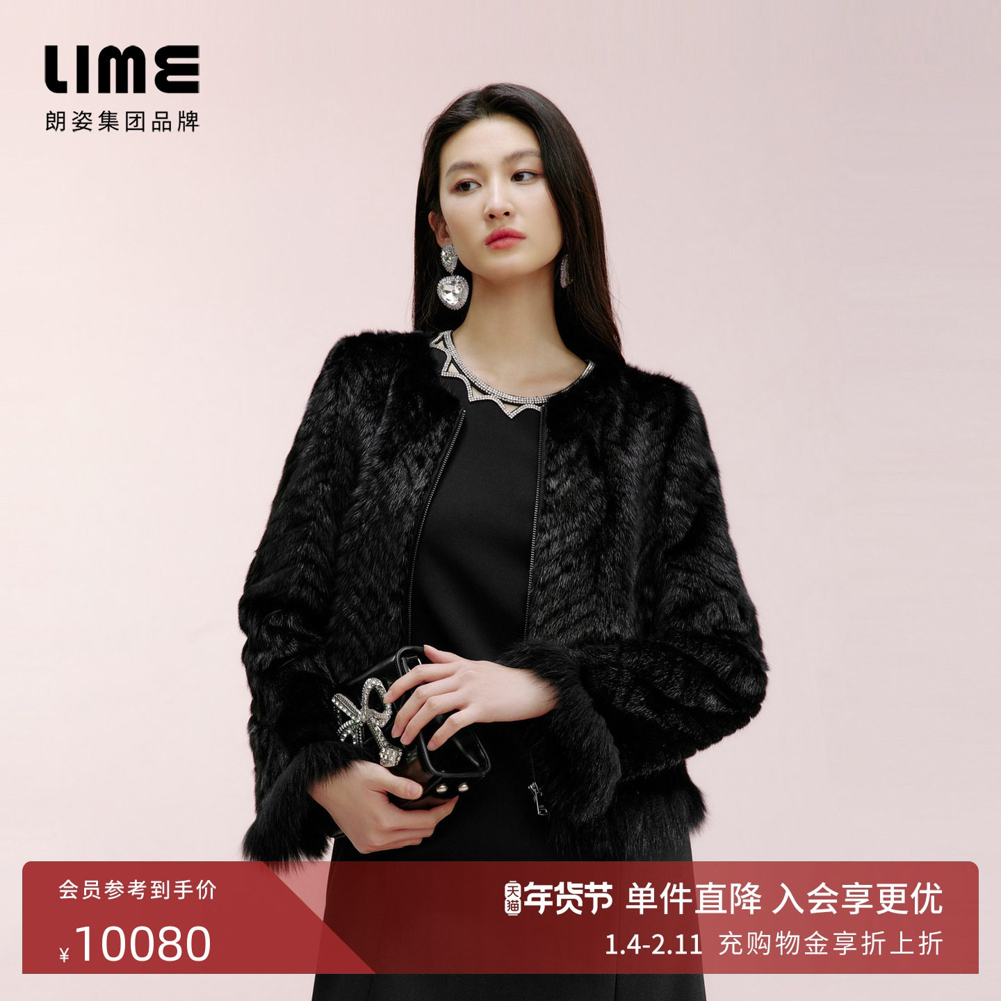 LIME莱茵轻奢皮草水貂毛短大衣2024秋冬新款千金名媛风保暖短外套