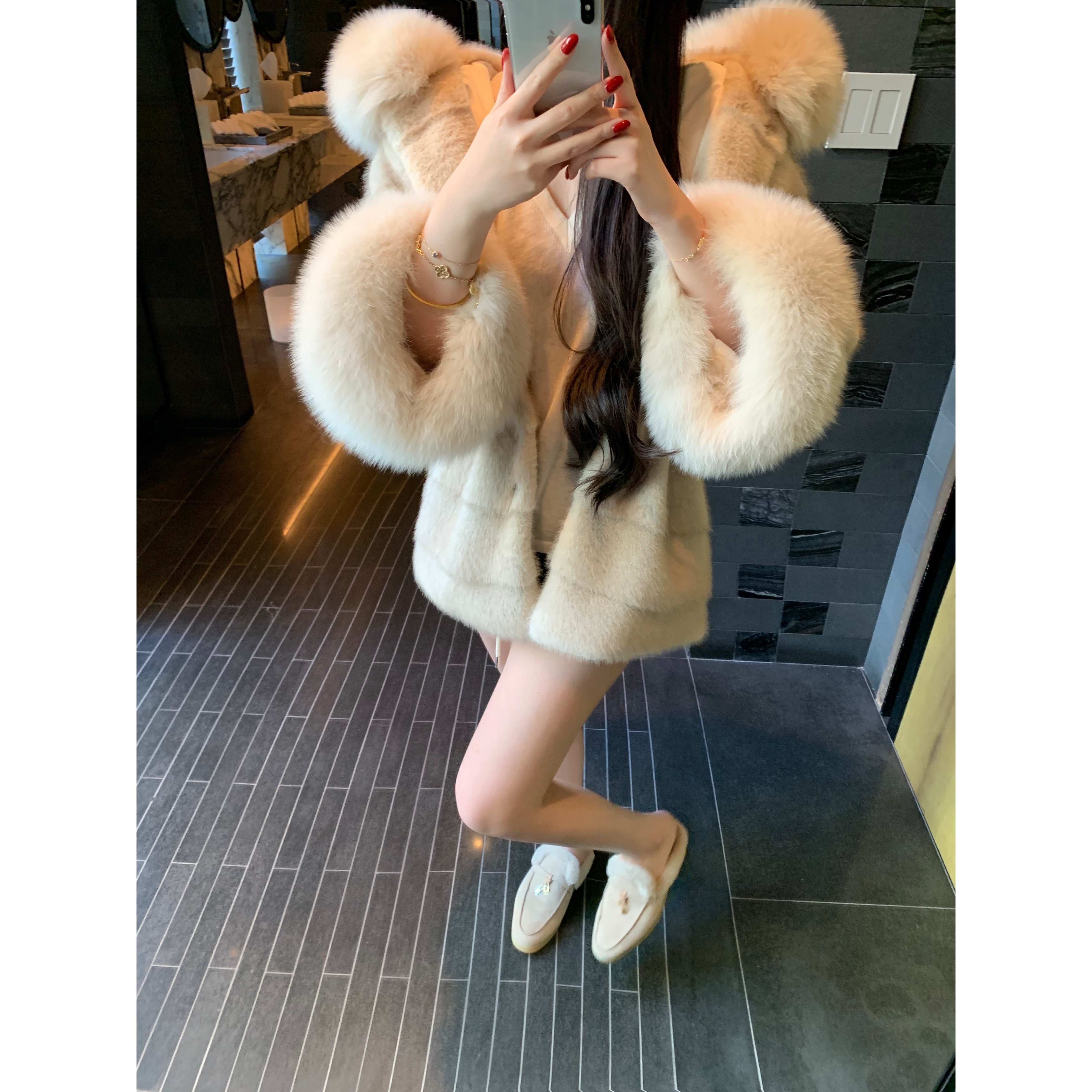 - 皮草狐狸毛中长款