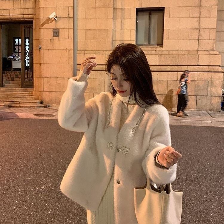 2025复古法式小香风毛毛保暖春款欧貂绒外套女仿皮草水貂毛上衣
