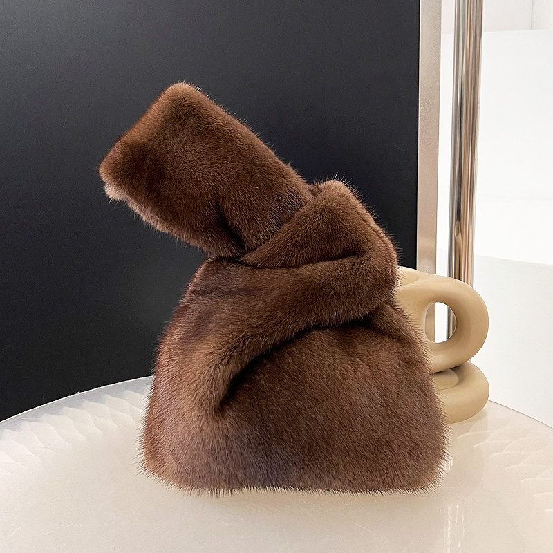 悦爱皮草水貂毛包包女新款可爱纯色貂毛毛绒迷你方便袋日常手提包