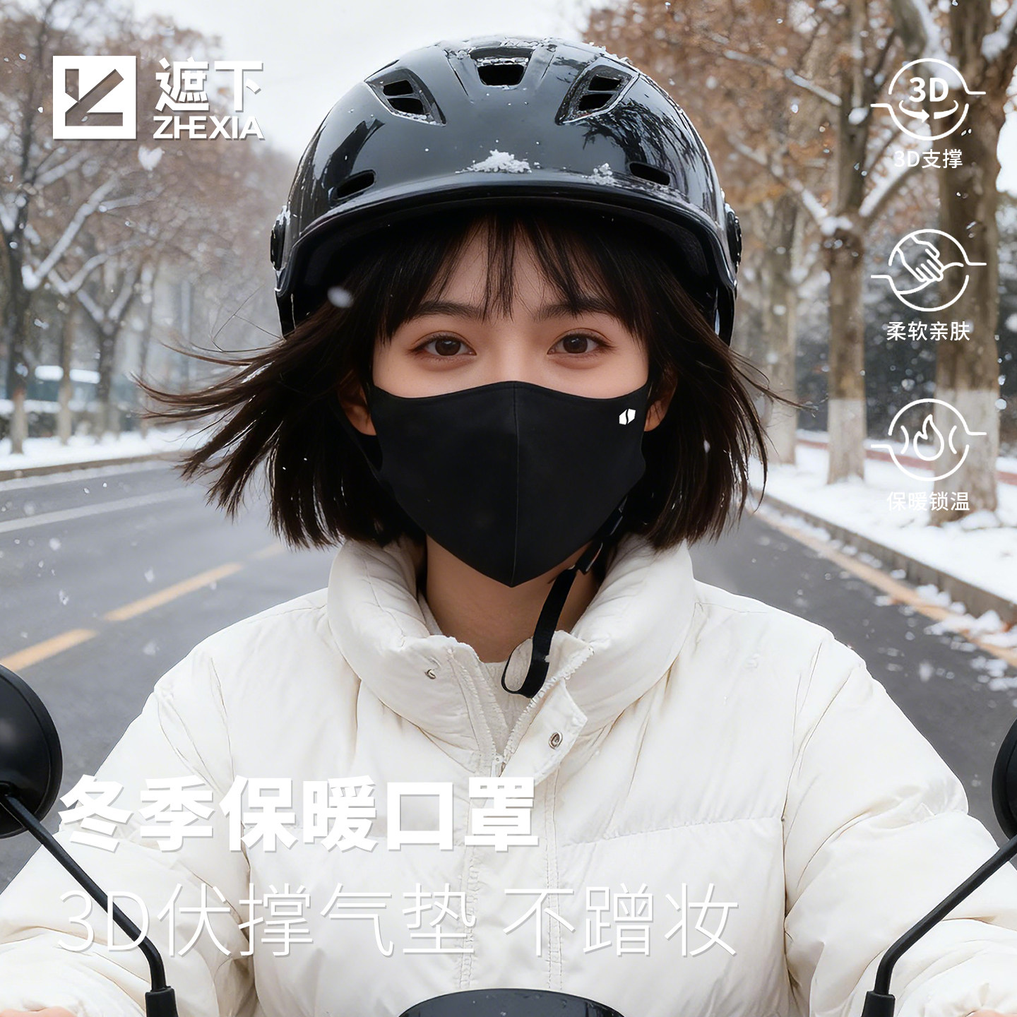 冬季保暖口罩新款防风滑雪护脸女漏鼻嘴透气骑行跑步运动防寒面罩