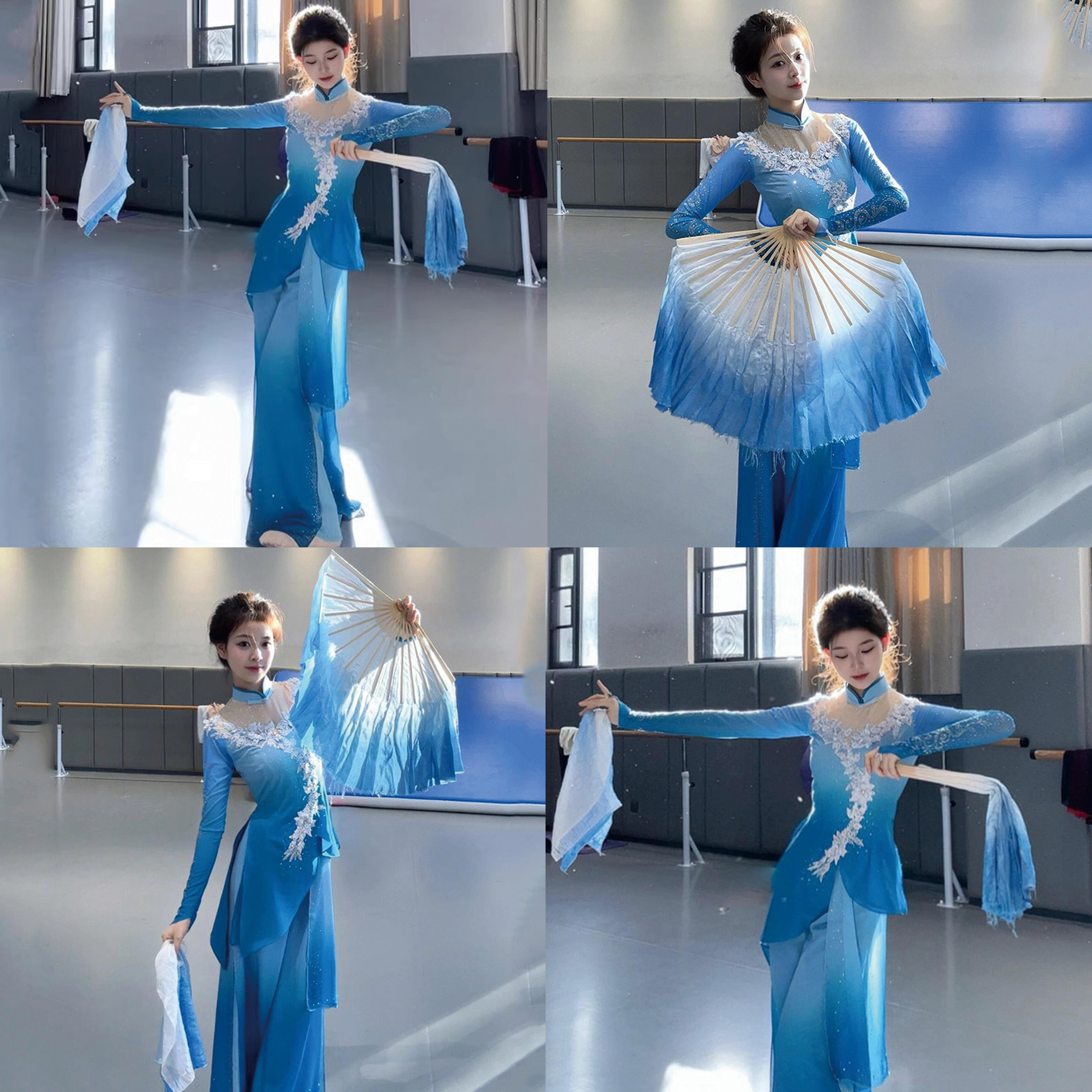 秧歌服套装古典舞演出服女新款飘逸扇子舞中国风渐变舞台表演服装