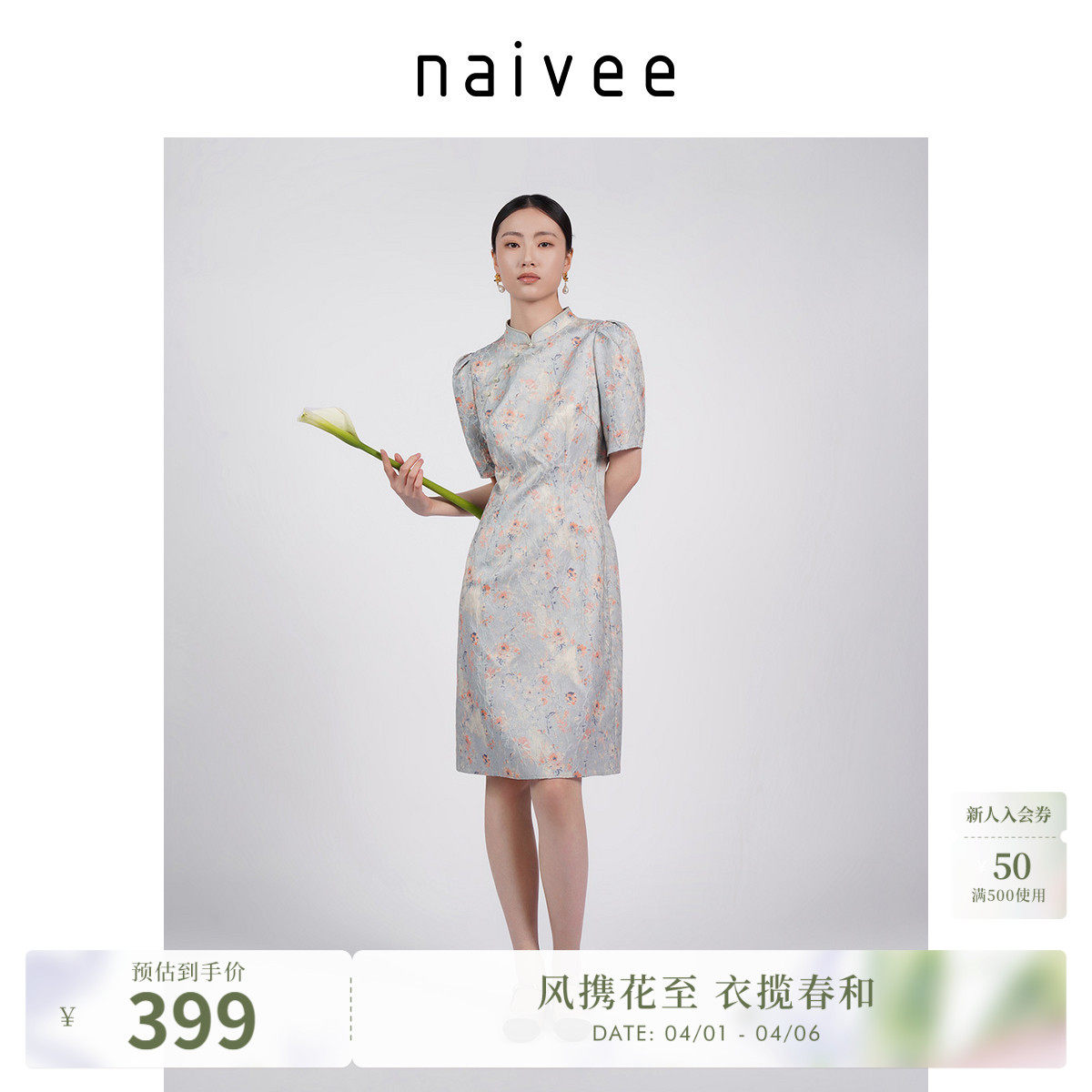 商场同款naivee纳薇立领改良旗袍新中式提花盘扣连衣裙年夏新款