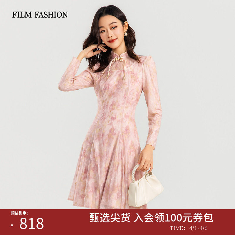 一电影一时装春季新款新中式旗袍连衣裙盘扣立领长袖收腰时尚女士