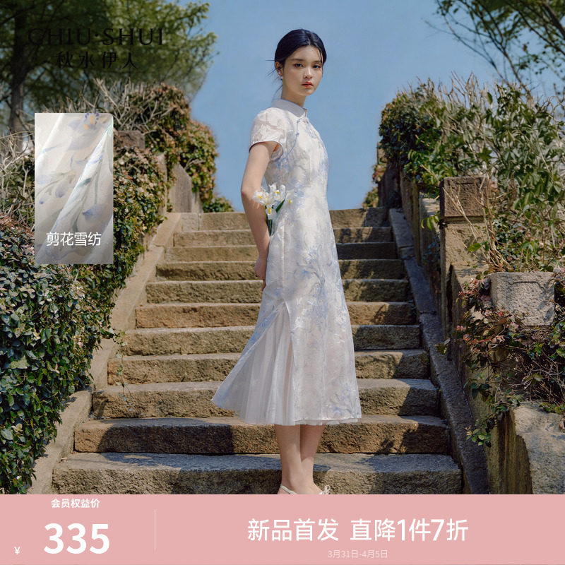 织造司[长相意]中式立领盘扣旗袍纯棉内搭吊带连衣裙镂空蕾丝披肩