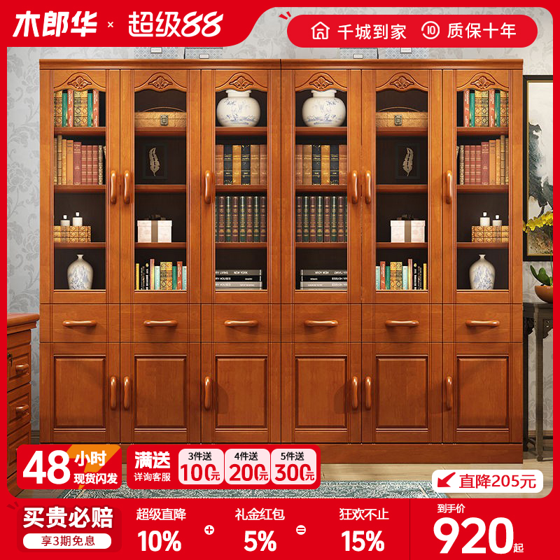 - 实木书柜书架带门