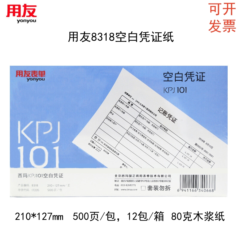 用友凭证纸KPJ101空白凭证打印纸JE05001 箱装 210*127mm 用友软件T3 T6 U8 NC 好会计KPJ101西玛SKPJ101适配