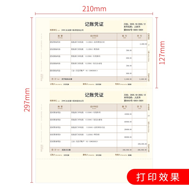 用友表单T3T6U8适用会计凭证打印纸7.1激光金额用友凭证纸B010102