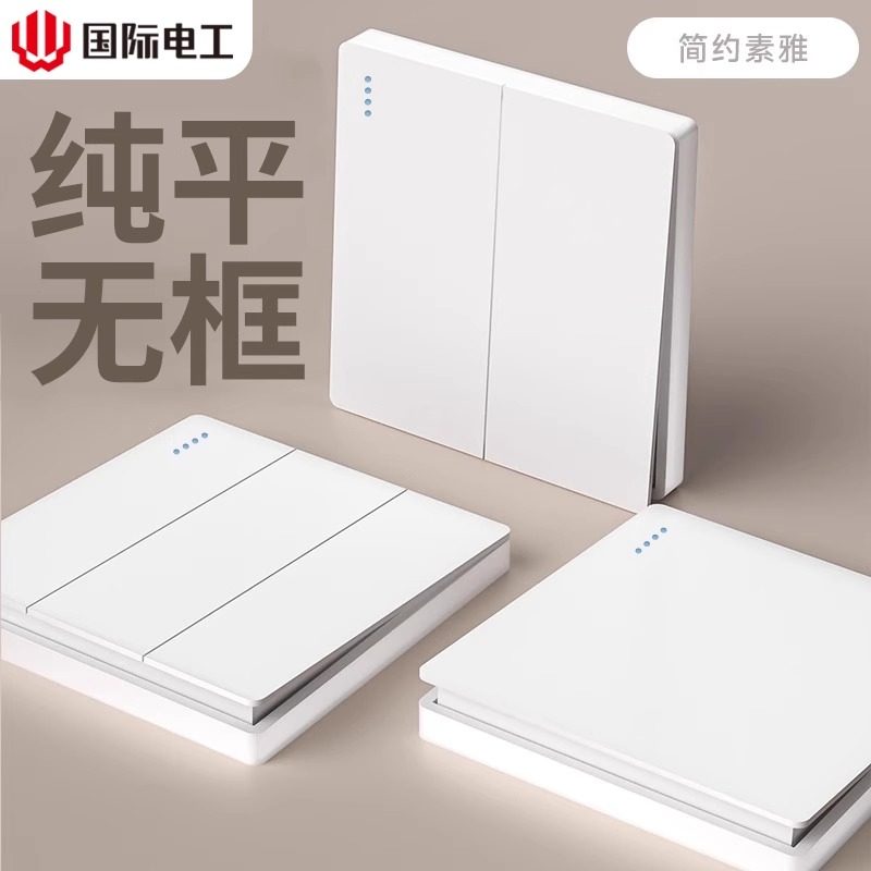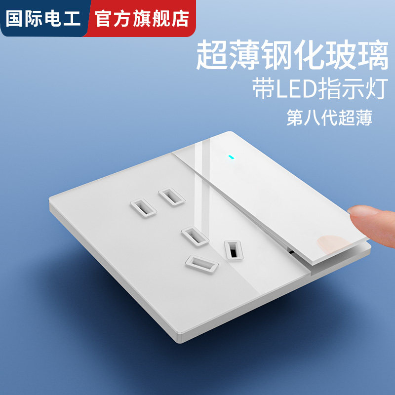 国际电工86型暗装玻璃家用多孔墙壁电源一开五孔开关插座面板LED