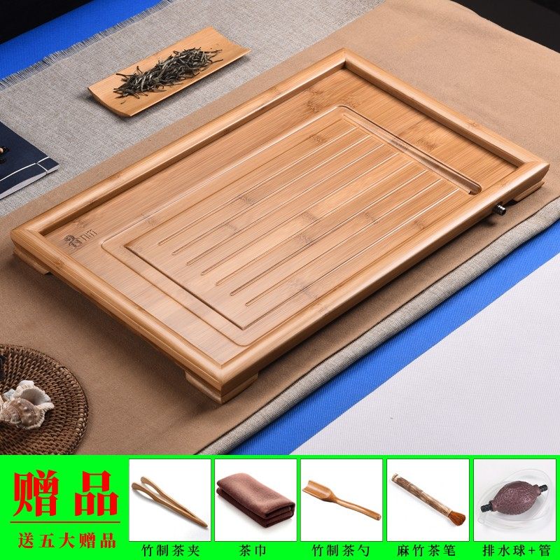 竹制茶盘 小号排水茶台蓄水功夫茶具配件 大号家用茶海实木抽屉式