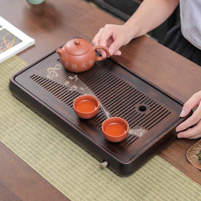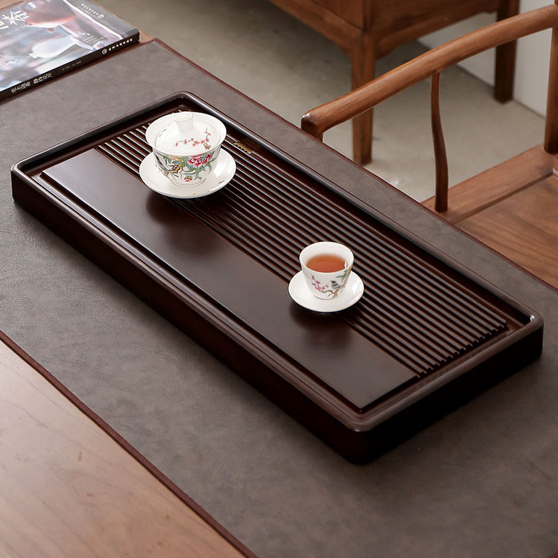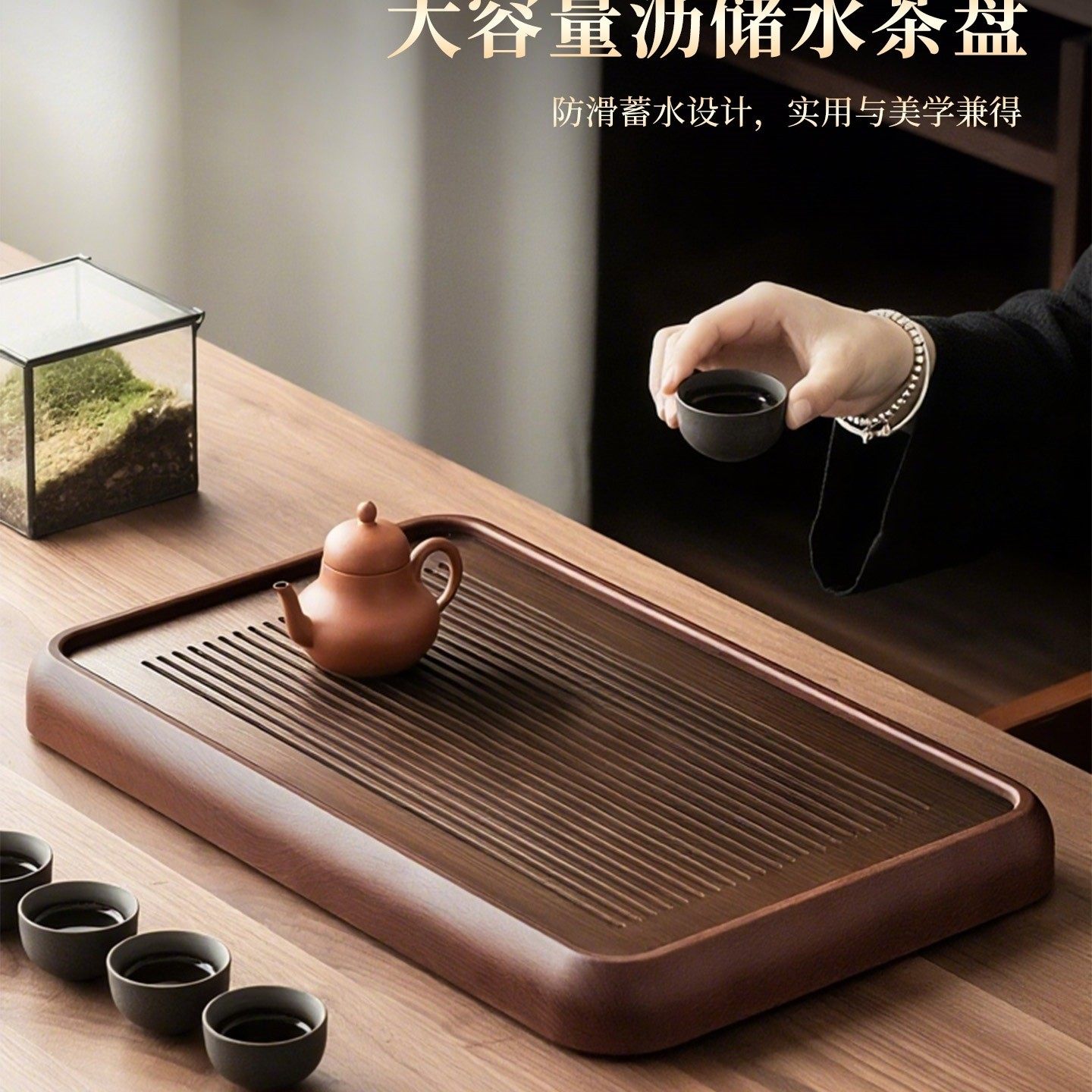 德国新款电木茶盘紫檀色现代家用茶具茶海实木大小号排水茶台托盘