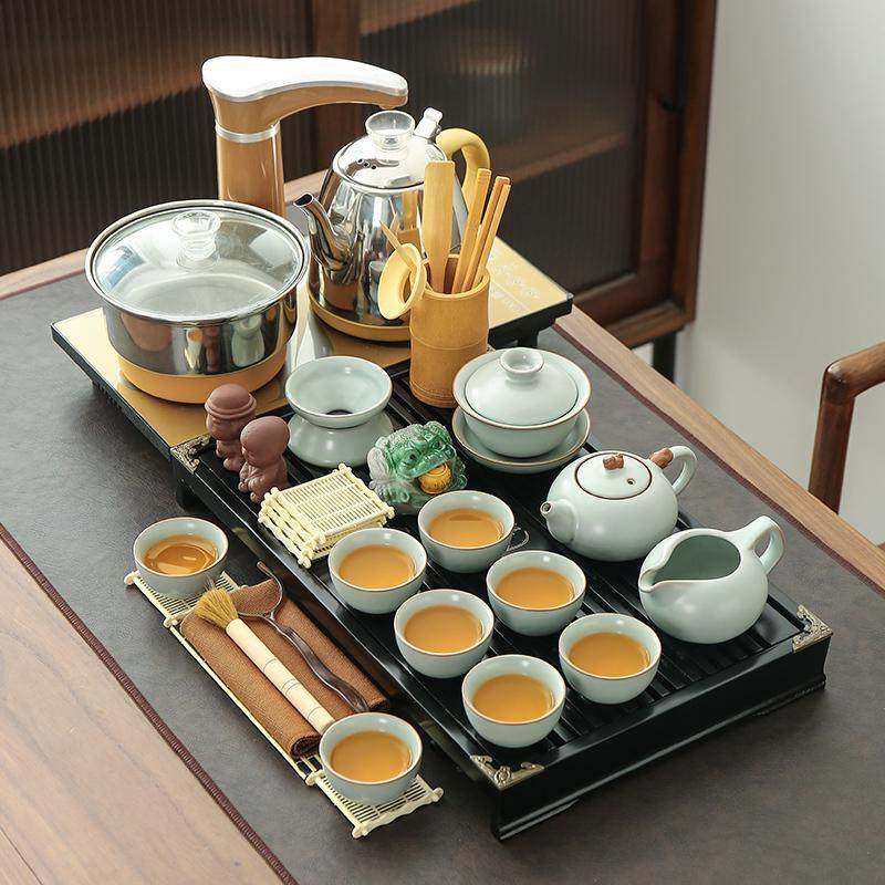乌金石茶盘套装电磁炉一体家用茶具套装电木茶海实木茶台托盘简约