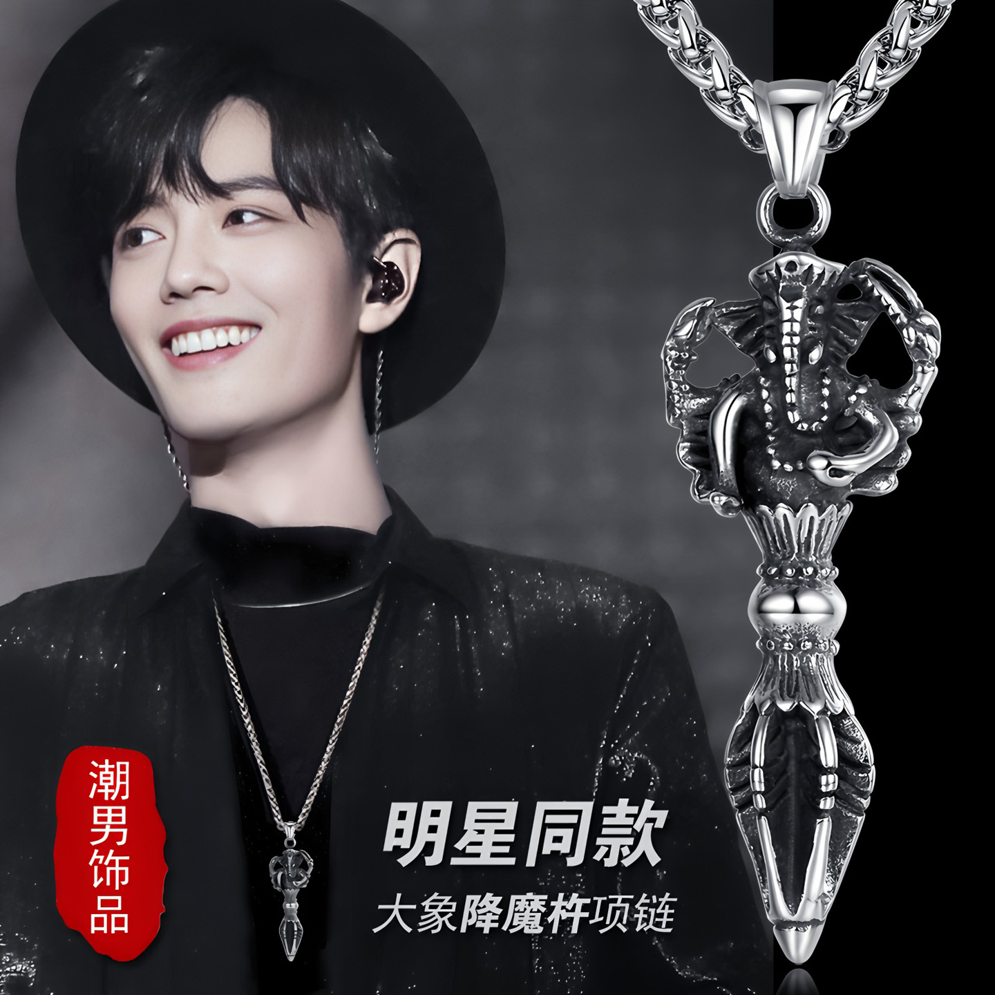 霸气大象降魔杵男士项链复古钛钢吊坠韩潮个性毛衣链挂件配饰礼物