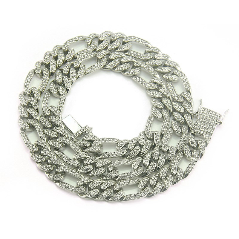 速卖通爆款三短一长镶钻古巴大A金链 欧美嘻哈潮男霸气项链项饰