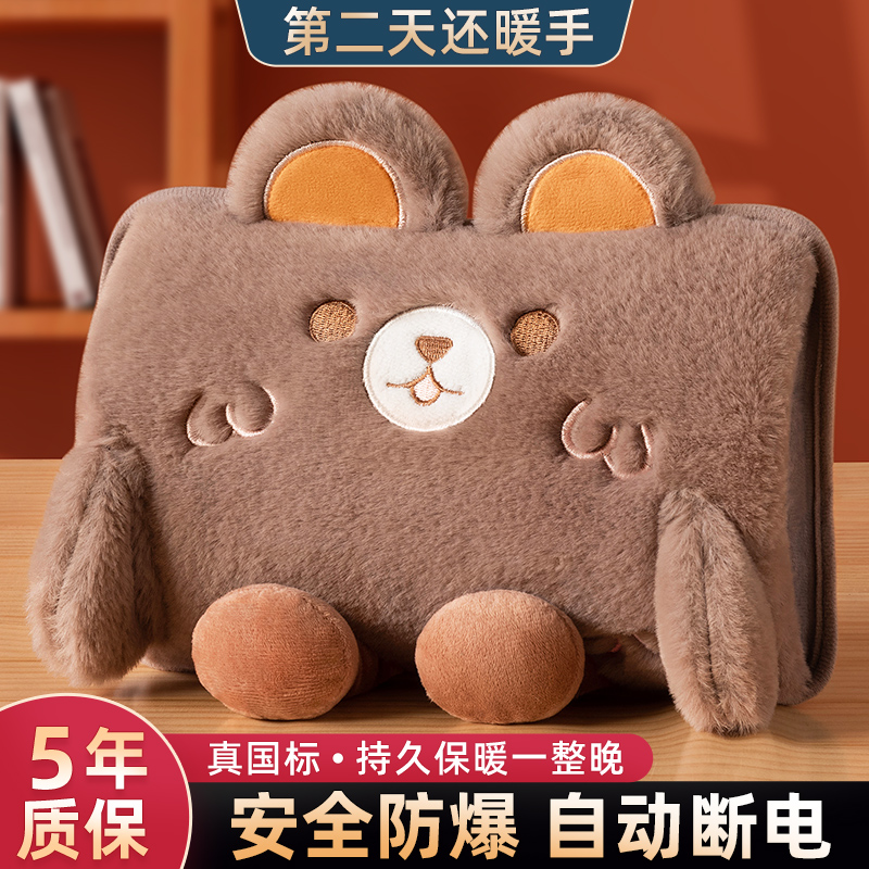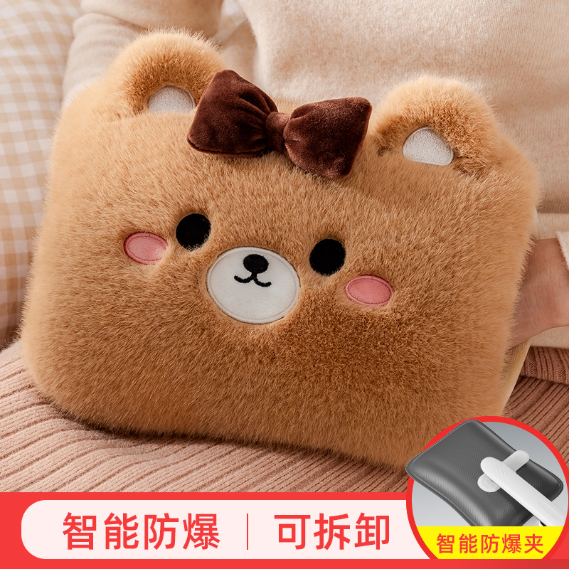 毛绒小熊热水袋痛经暖肚子神器学生宿舍充电暖宝宝防爆暖手电暖袋