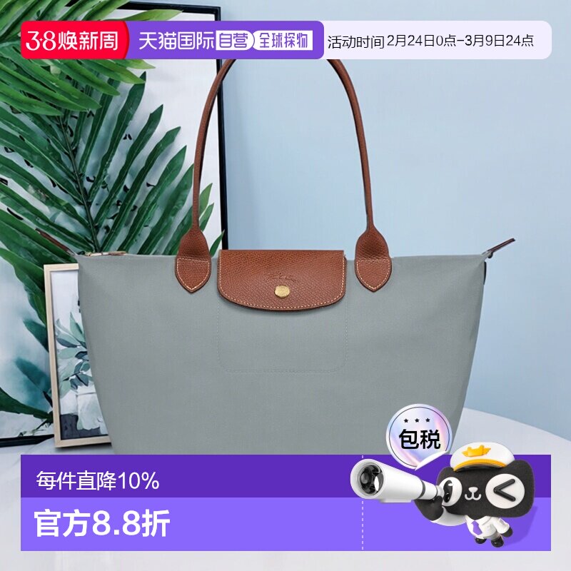 香港直发Longchamp珑骧女士黑色手提包织物可折叠小号长柄单肩