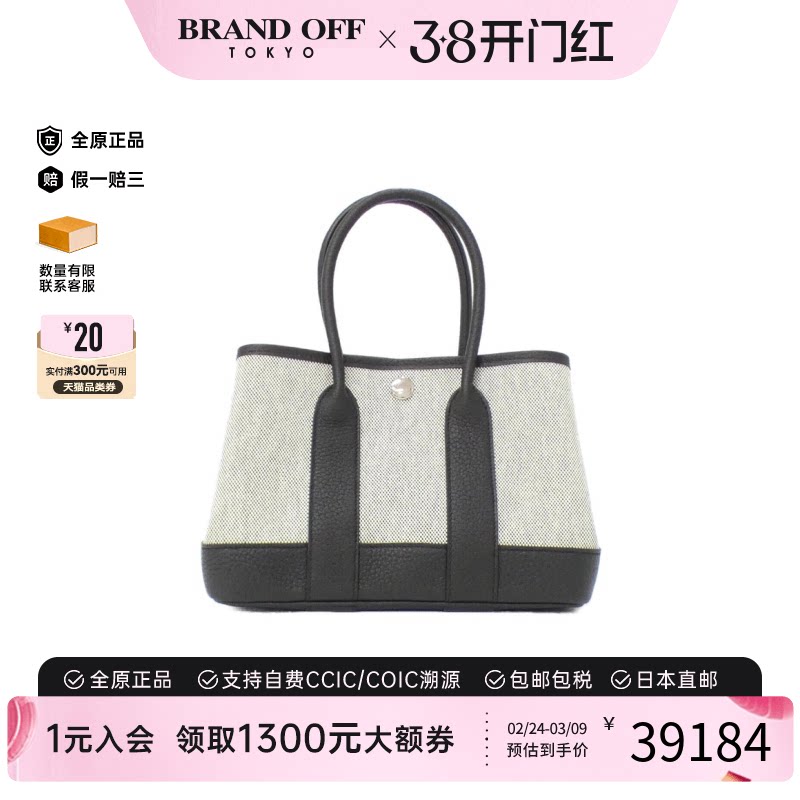 中古Hermes爱马仕女包A级95新Neo Garden23花园包米白/黑色手提包