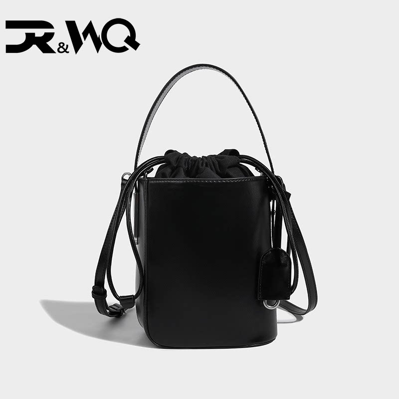 DR&WQ清新款高级质感简约女包抽绳小众黑色通勤水桶包斜挎手提