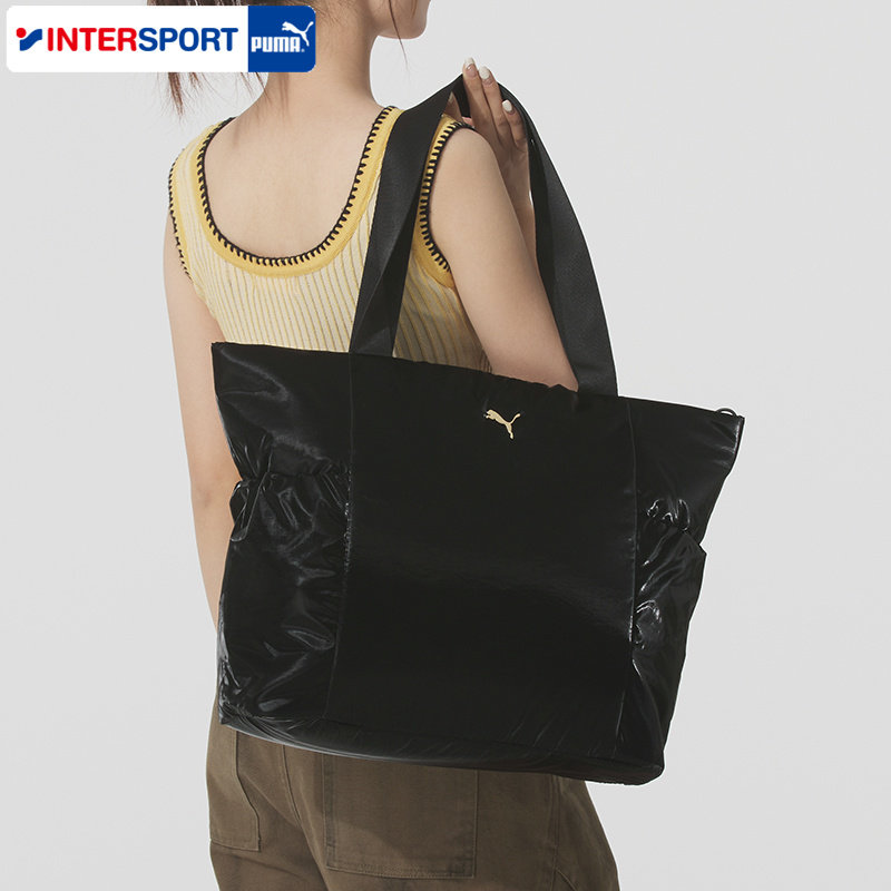 PUMA彪马女包运动包女士复古黑色手提包学生上课大容量托特包拎包