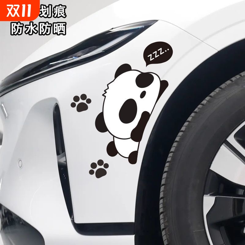 汽车贴纸卡通熊猫车贴划痕遮挡遮盖防水车身个性创意贴画电动车贴