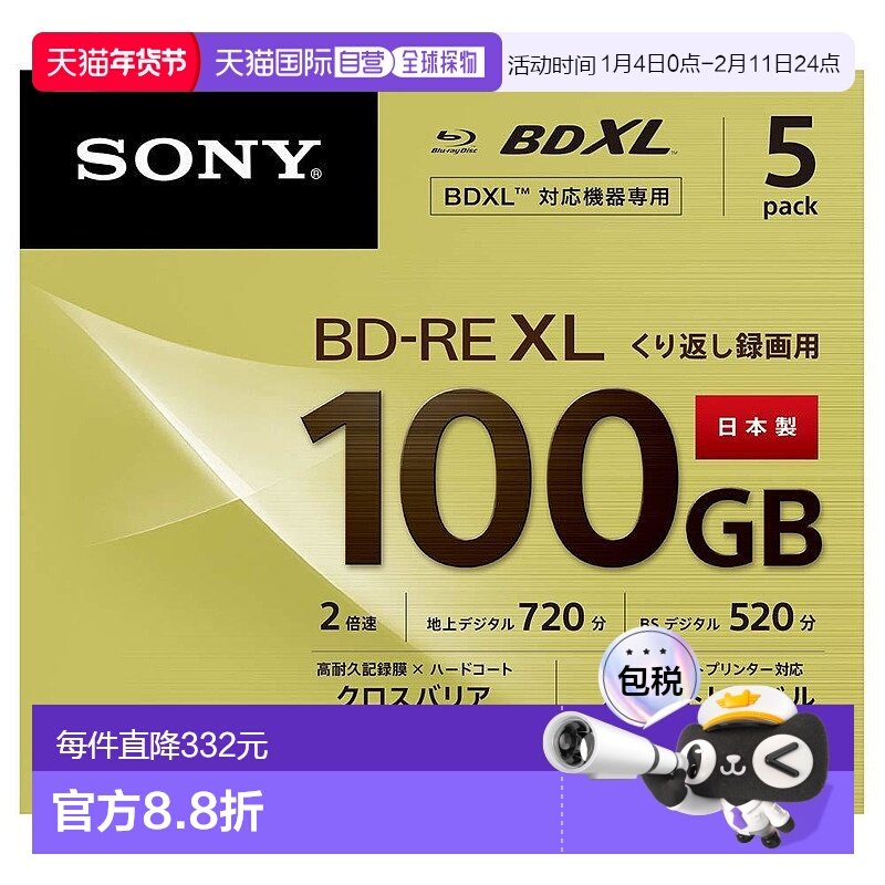 【日本直邮】Sony索尼蓝光影碟5片装日本制造5BNE3VCPS2打印机