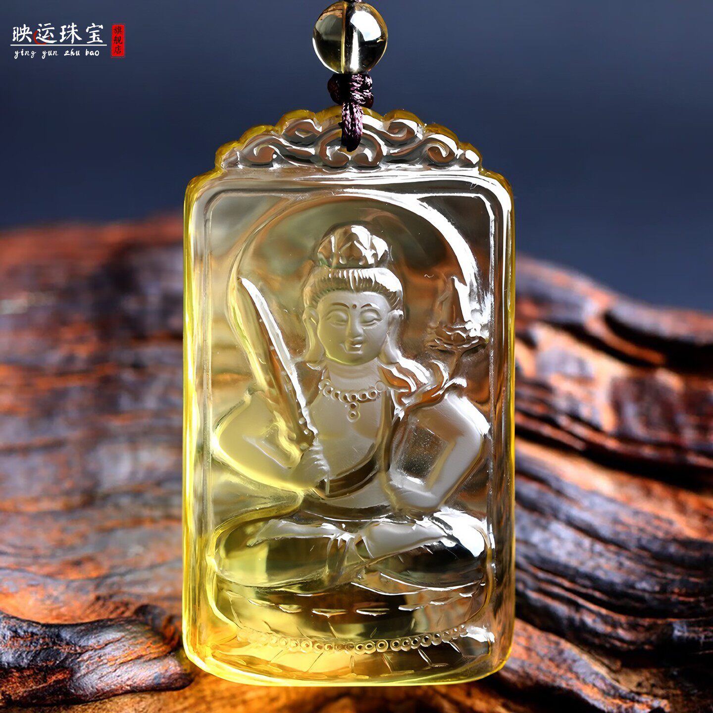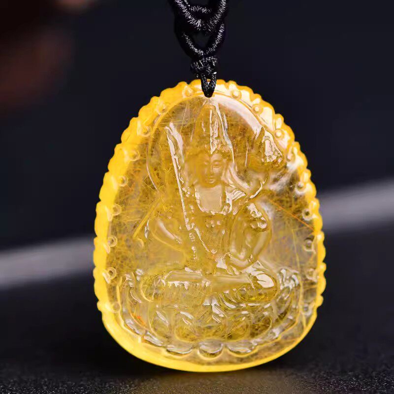 天然黄水晶虚空藏菩萨吊坠属牛属虎生肖守护神佛像男女护身符项链