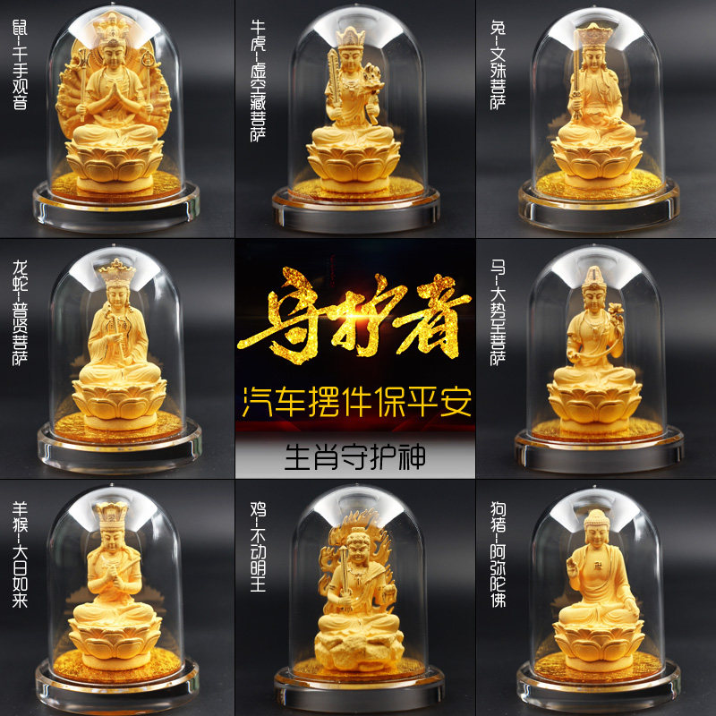 桃木汽车摆件车内装饰品创意保平安符属牛虎本命佛虚空藏菩萨佛像