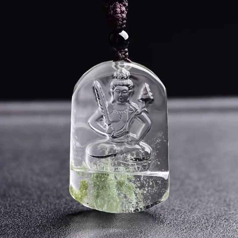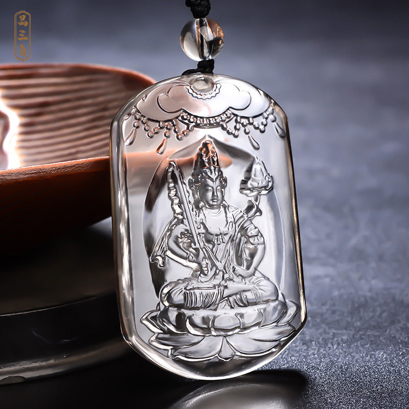 天然白水晶本命佛吊坠项链虚空藏大日如来普贤菩萨男属牛虎女挂件