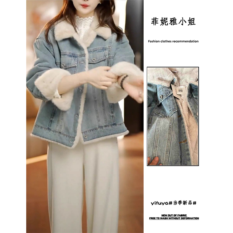 仿兔毛加绒牛仔外套女2025年秋冬季新款休闲bf风设计感宽松派克服