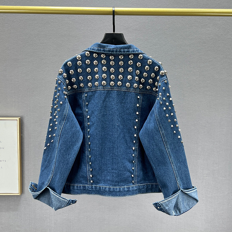 BF牛仔外套女2024年春季新宽松显瘦欧洲站重工朋克铆钉夹克上衣潮