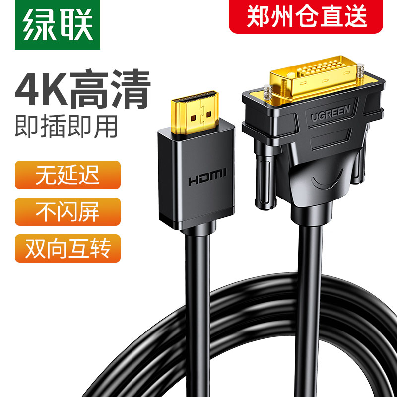 热销绿联HDMI转DVI连接线笔记本外接电脑显示器屏幕转换HDMI线