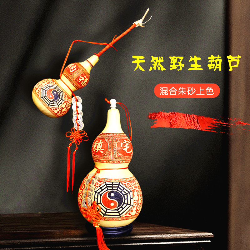 天然葫芦摆件挂件中国结招财真开口大小号带龙头客厅五帝钱门对门