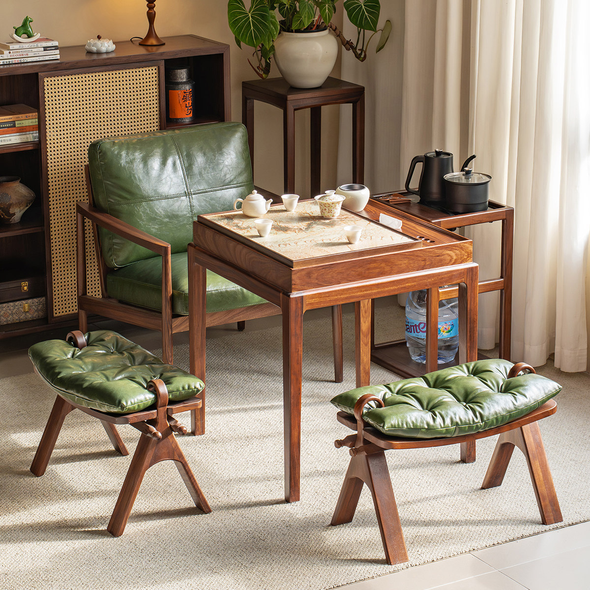 单里阳台茶桌椅实木新中式小型泡茶台小茶桌北美黑胡桃木色小方桌
