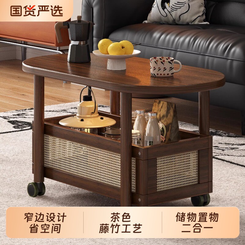 岩板茶几客厅可移动小茶几家用新款小茶桌小户型简约双层收纳推车