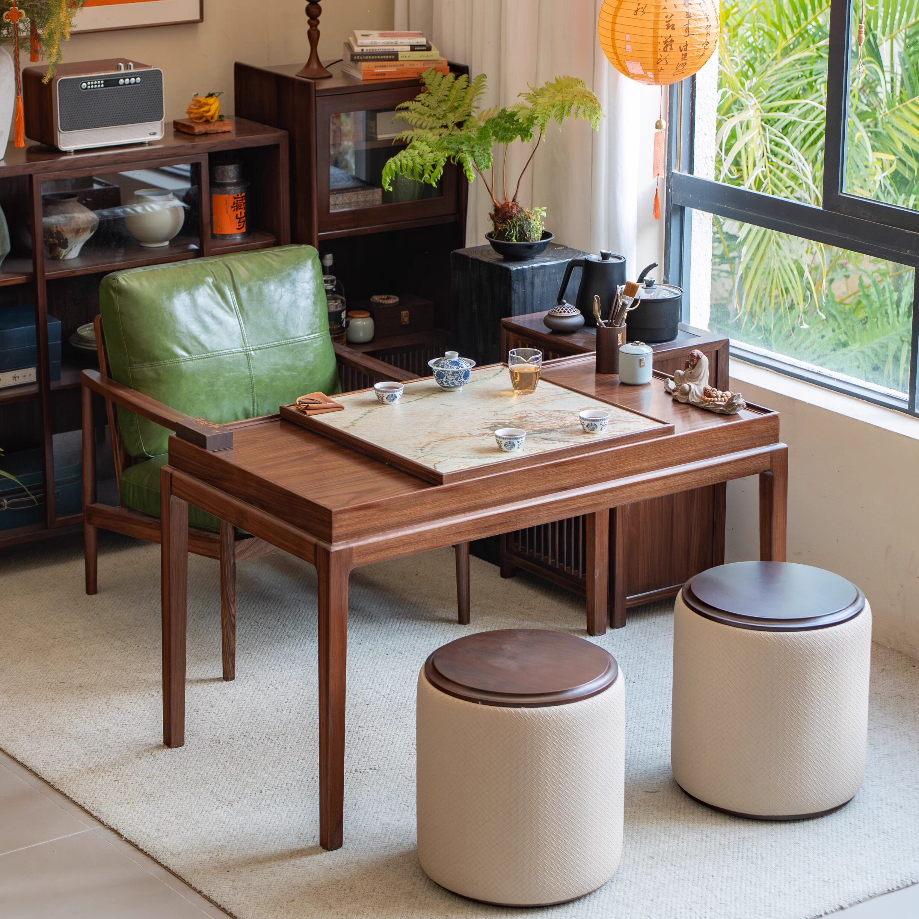 新中式茶桌椅组合北美黑胡桃木色茶室实木泡茶台阳台小茶桌椅组合