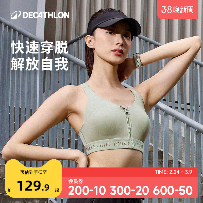 迪卡侬运动内衣女前拉链防震跑步背心高强度瑜伽健身吊带文胸SAS1