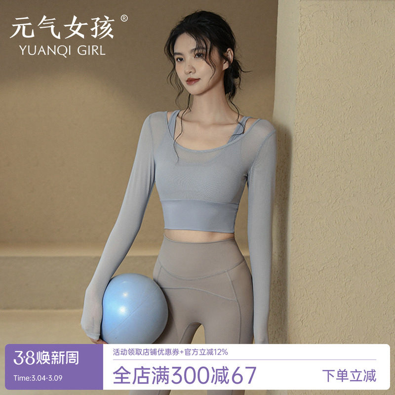 春季瑜伽服上衣女新款速干运动长袖t恤跑步普拉提训练健身服套装