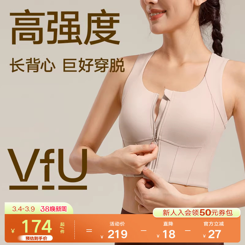 VfU前拉链运动背心女高强度外穿收副乳文胸跑步健身防震运动内衣