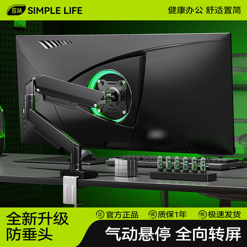 NB电脑显示器支架带鱼屏万向升降旋转调节气压机械臂vesa屏幕底座